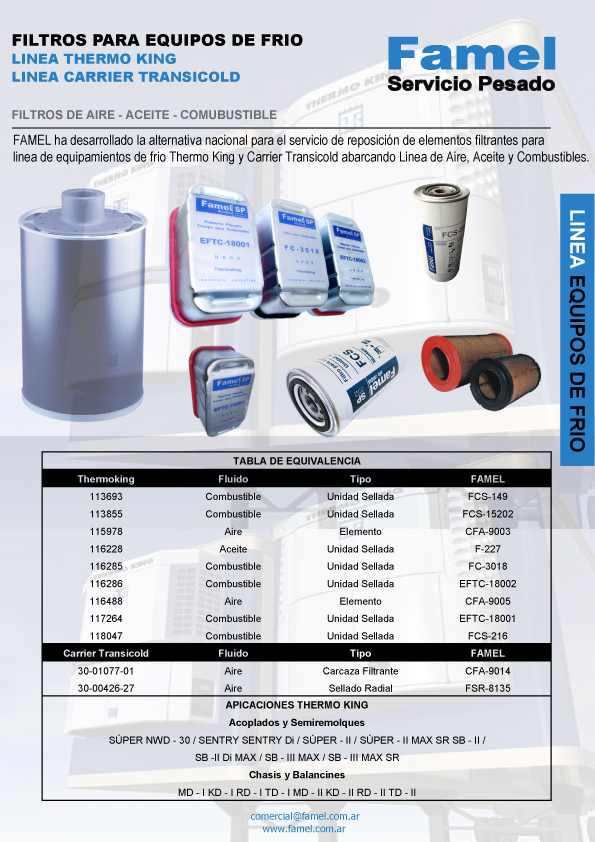 FILTROS FAMEL Grupos Frigoríficos Thermoking - Carrier |